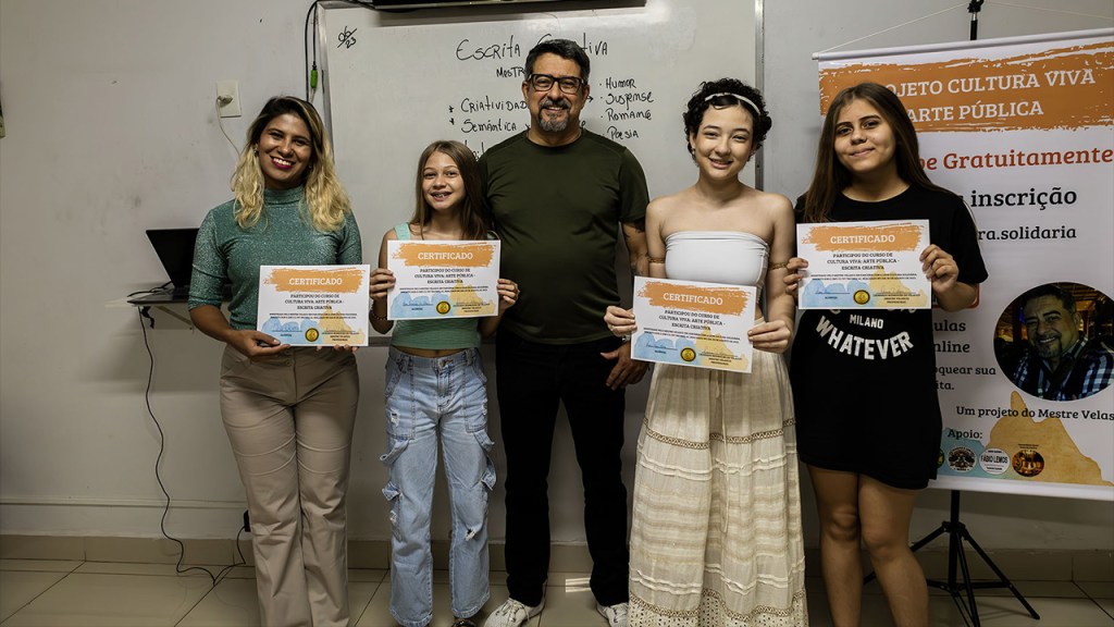 O encerramento do curso foi marcado pela entrega de certificados assinados por Leonardo Rodrigues de Velasco, nome artístico de Mestre Velasco. Para ele, a escrita é um ato de ocupação: “Quando escrevemos sobre o que sentimos e vivemos, estamos construindo pontes com o outro e com o nosso território”, afirmou.