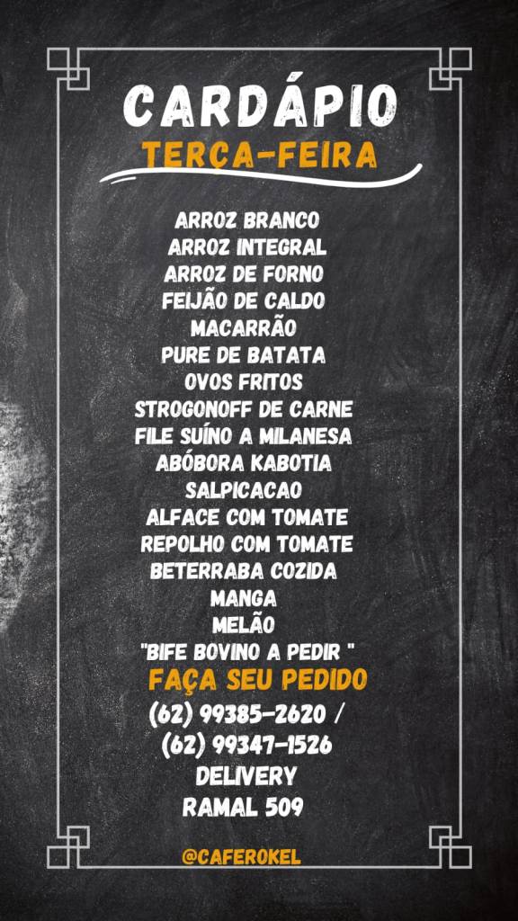 Confira o cardápio: