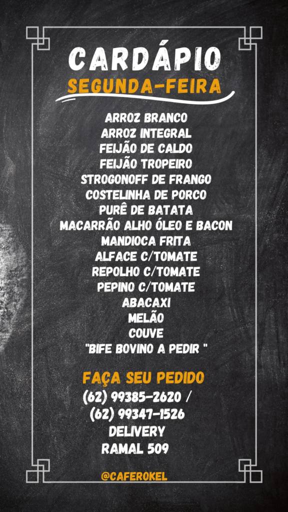 Hoje, o CaféRokel inicia a semana com uma seleção de pratos que prometem deixar qualquer um com água na boca. Entre as opções, destaca-se o saboroso feijão tropeiro, o reconfortante strogonoff de frango, a suculenta costelinha de porco e um cremoso purê de batata, além de uma variedade de outras delícias.