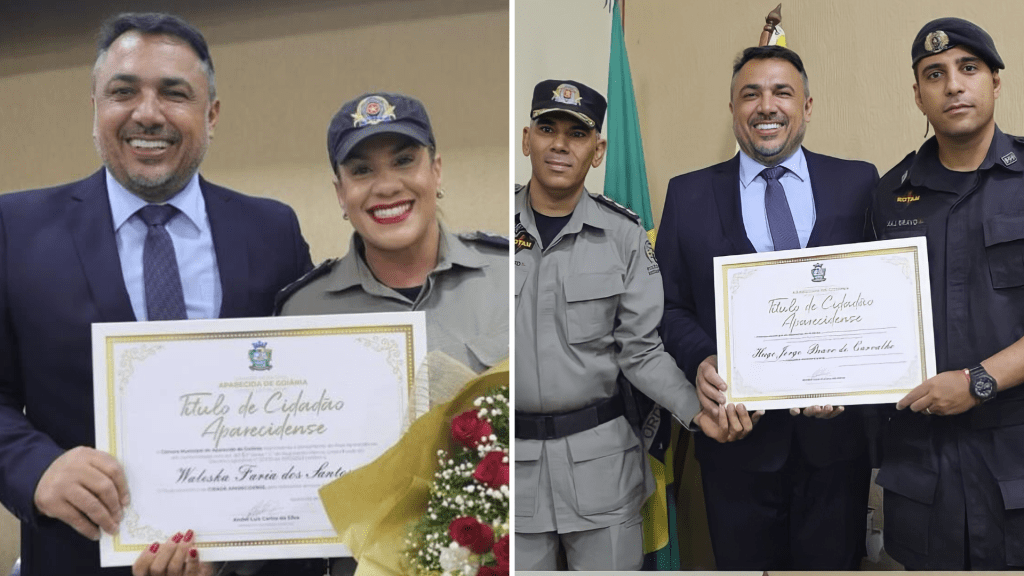 “André Fortaleza, em nome de todos os presentes, parabeniza calorosamente os policiais militares de Goiás, ressaltando a coragem exemplar que esses agentes demonstram no cumprimento de suas nobres funções”, destaca o subtexto da publicação. Ainda, agradece a participação dos colegas vereadores, destacando a colaboração essencial para a realização de uma cerimônia marcante.