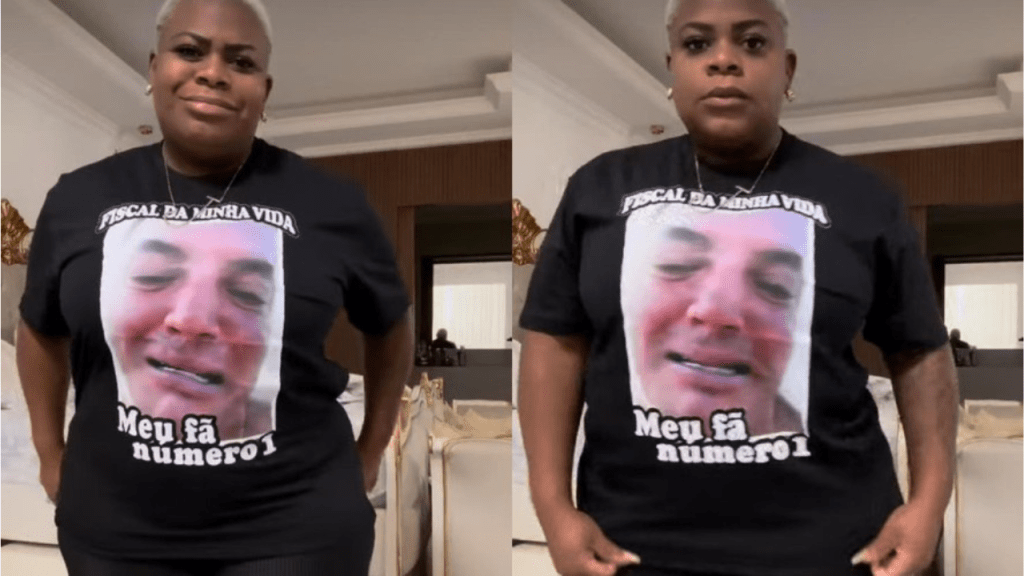 “Bom dia, amores! Partiu facul? Hoje decidi não usar maquiagem e optei por um look que achei maravilhoso. Quando vi essa blusa na Uruguaiana, pirei. Achei que super combinou”, brincou a cantora e empresária de 27 anos, enquanto exibia uma camiseta preta personalizada com a foto do jornalista Léo Dias. A peça trazia a mensagem: “Fiscal da minha vida. Meu fã nº 1”.