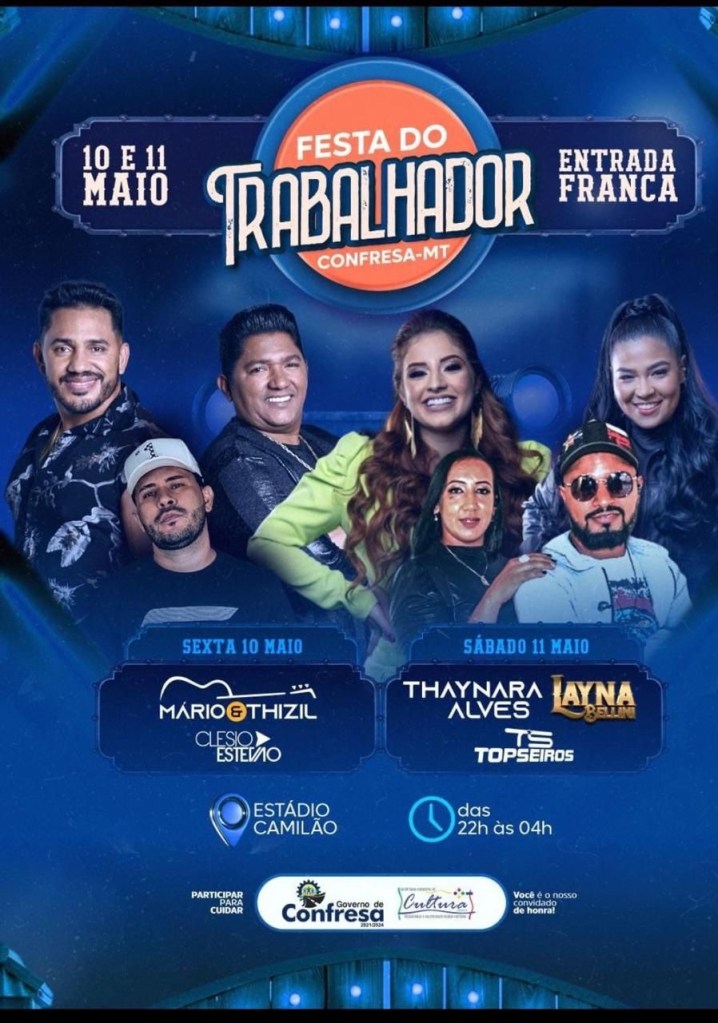 Com uma voz única e uma presença de palco magnética, Layna Bellini promete fazer deste evento um momento memorável para todos os presentes. A entrada para o show é franca. Os moradores de Confresa e regiões próximas podem se preparar para uma noite de pura energia e diversão, com Layna Bellini liderando a celebração na festa do trabalhador.
