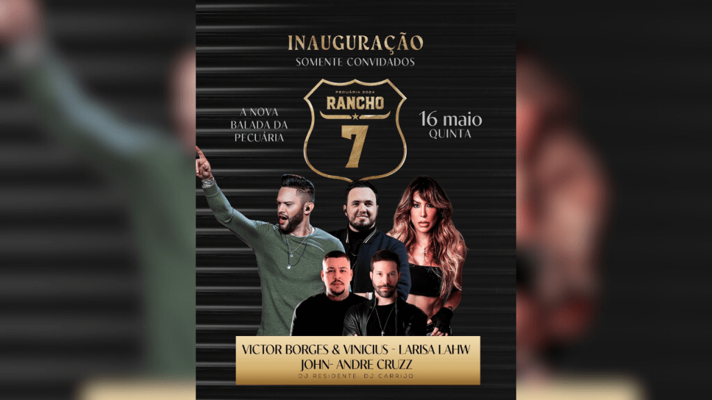 Na quinta-feira, dia 16 de maio, a partir das 22 horas, a Pecuária de Goiânia se prepara para uma grande inauguração: a nova boate Rancho 7 abre suas portas em uma festa exclusiva para convidados. Com uma proposta inovadora e ambiente moderno, a Rancho 7 promete agitar as noites goianas durante a temporada pecuarista.