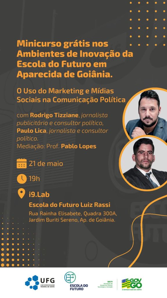 Nesta próxima terça-feira, dia 21 de maio, a Escola do Futuro Luiz Rassi, em Aparecida de Goiânia, será palco de um mini curso dedicado ao uso de marketing na política. O evento contará com a participação de renomados profissionais da área, incluindo Rodrigo Tizziani, jornalista e marqueteiro político conhecido por seu trabalho na eleição do atual prefeito de Anápolis, Roberto Naves, e atualmente envolvido na campanha do pré-candidato a prefeito em Valparaíso de Goiás, Zé Antônio, com o apoio direto da deputada federal Lêda Borges.