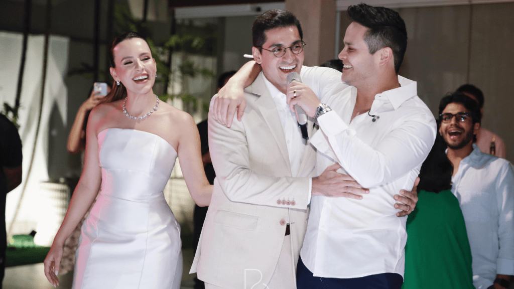 O evento, que aconteceu em um ambiente acolhedor, foi marcado por momentos de muita emoção e alegria. Após a formalização da união, os noivos e seus convidados celebraram a conquista ao som da renomada dupla sertaneja Matheus e Kauã, que realizou um pocket show exclusivo para os presentes, transformando a ocasião em uma verdadeira festa.