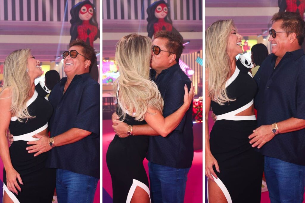 Leonardo e Poliana Rocha também marcaram presença, esbanjando amor na celebração.