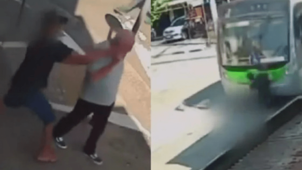 Câmeras de segurança registraram o momento em que o adolescente, que caminhava pela calçada, se aproximou da vítima e rapidamente tomou o celular de suas mãos, saindo em disparada para a rua. No entanto, a fuga durou apenas dois segundos, pois o jovem foi atingido por um ônibus que passava pela via e ficou preso embaixo do veículo.