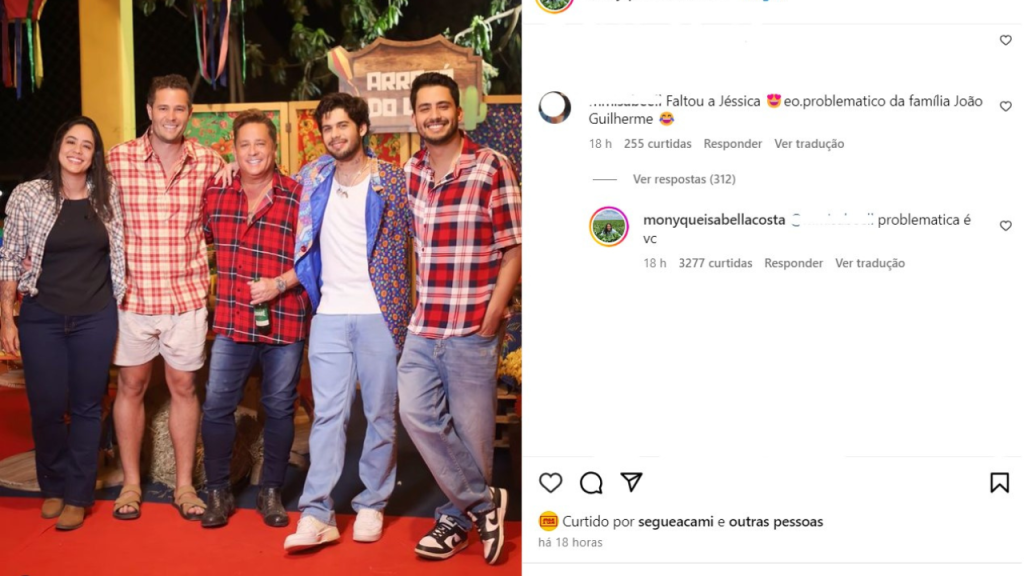 “Faltou a Jéssica e o problemático da família, João Guilherme,” disparou uma internauta nos comentários da foto. Monyque, então, fez questão de responder e rebateu o comentário desnecessário sobre seu irmão: “Problemática é você,” declarou a filha de Leonardo.