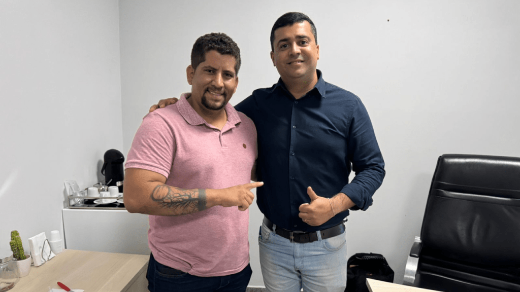 Repórter dá boas-vindas e deseja sucesso ao recém-nomeado gestor em reunião na Prefeitura Alex Villas Boas