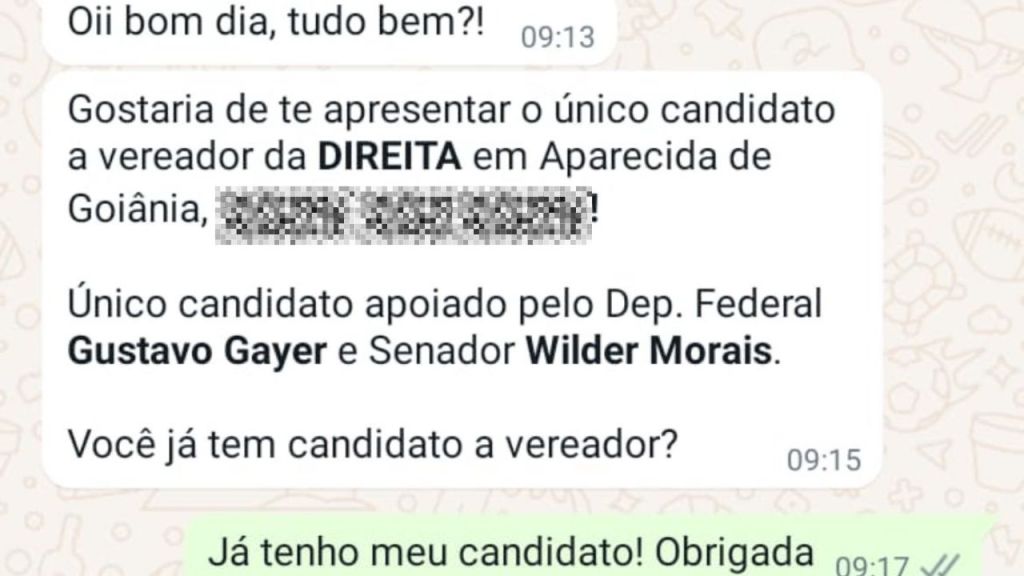 Em mensagens divulgadas recentemente, circula uma conversa no WhatsApp em que o remetente declara: “Gostaria de apresentar o único vereador da direita em Aparecida de Goiânia.” A declaração, no entanto, foi rapidamente desmentida por opositores e analistas políticos, que destacam a presença de vários outros candidatos que também se identificam com a direita, alguns até mesmo com o apoio de figuras influentes no cenário nacional, como Bolsonaro, um dos mais proeminentes representantes da direita no Brasil.