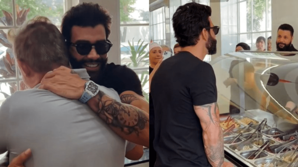 Durante sua passagem pelo restaurante, Gusttavo Lima fez questão de pedir o cupim fatiado, mencionando que era seu prato favorito. “Meu prato favorito, sempre foi,” afirmou o cantor. Recentemente, Gusttavo também expressou sua gratidão publicamente durante um show. “Meu irmão, naquela época a gente não passou fome porque você interveio, Deus te usou e você usava seu restaurante para dar comida para mim e meu irmão. Se não fosse por você, a gente tinha voltado para a roça. Você não tem noção do tanto de gratidão que eu tenho por você e sua família,” agradeceu Gusttavo Lima no evento ‘Buteco’, promovido pelo sertanejo.