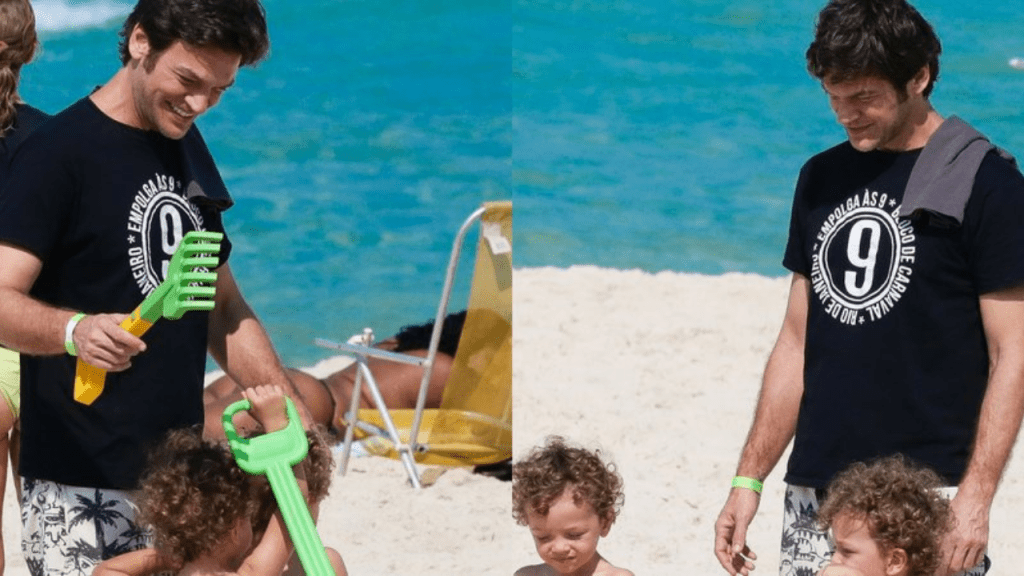 Ator foi flagrado se divertindo com os herdeiros de dois anos na Barra da Tijuca, enquanto aproveitavam o dia ensolarado no Rio de Janeiro