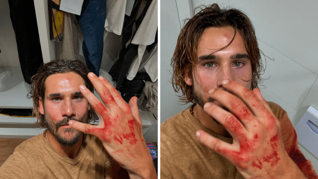Intérprete de Rudá na novela Mania de Você, que está no ar na faixa das 21h da Globo, o ator Nicolas Prattes usou suas redes sociais nesta sexta-feira, 20, para contar que se machucou de verdade durante as gravações de uma cena da trama. Com sangue cenográfico nas mãos, ele mostrou uma ferida na testa.