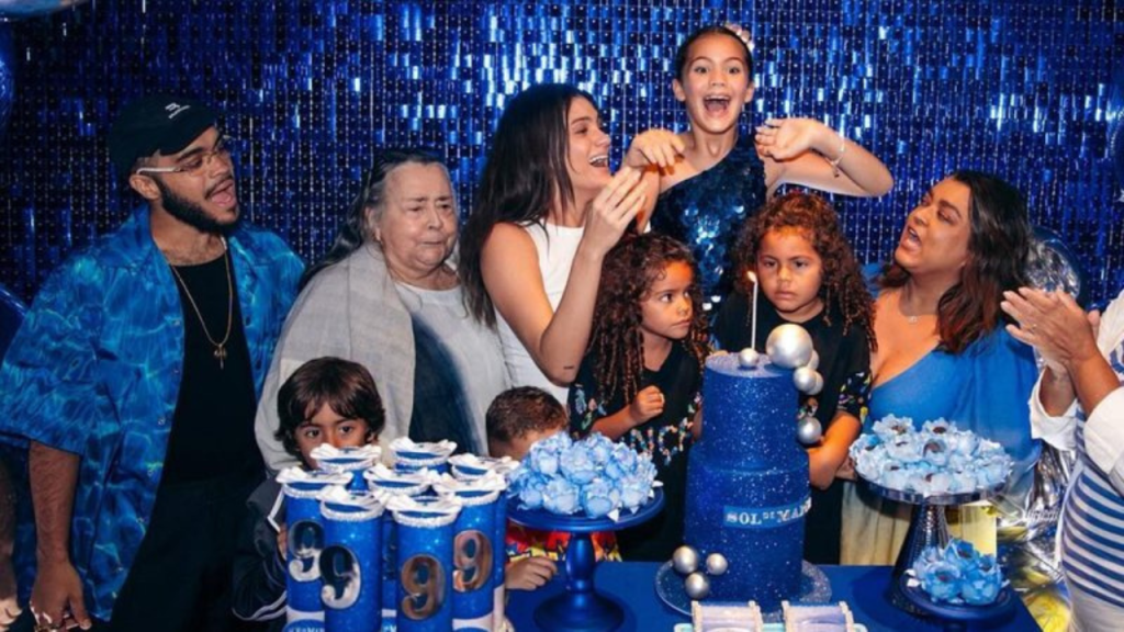 A aniversariante brilhou em um vestido azul cintilante e foi o centro das atenções enquanto cantava e dançava ao lado de seus convidados. A celebração reforçou os laços familiares e destacou o carinho de Preta pela neta.