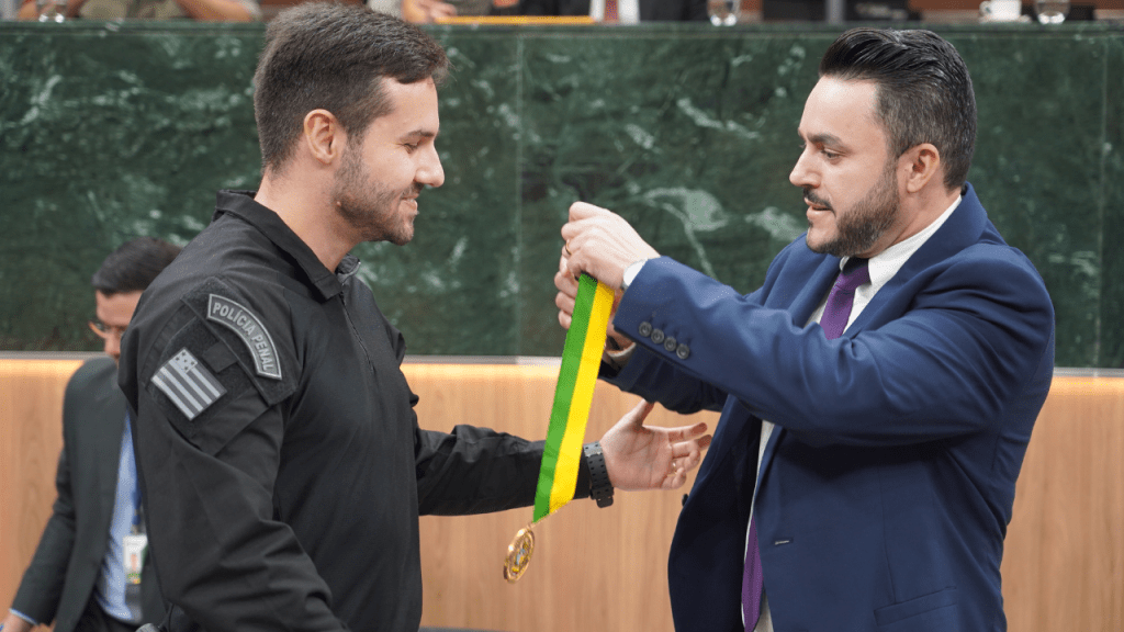 O capitão da Polícia Militar, Daniel Rosa Resende, ao receber a Medalha Pedro Ludovico Teixeira, destacou a importância das forças de segurança na construção de um Estado mais justo e seguro. Ele também falou em nome dos demais agraciados. “Nossa missão é oferecer uma segurança pública de excelência, garantindo os direitos fundamentais de cada cidadão”, disse.