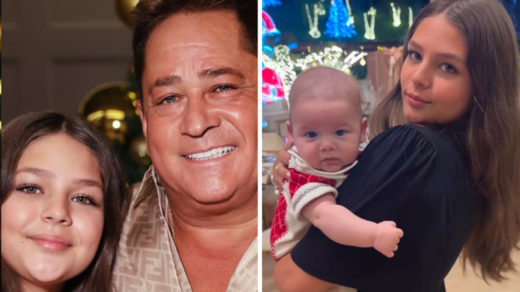 A celebração de Natal da família do cantor Leonardo foi marcada por momentos de carinho e fofura entre os netos do sertanejo. Maria Sophia, filha mais velha de Pedro Leonardo e Thais, chamou atenção ao surgir em um vídeo segurando o primo caçula, José Leonardo, filho de Virginia Fonseca e Zé Felipe.