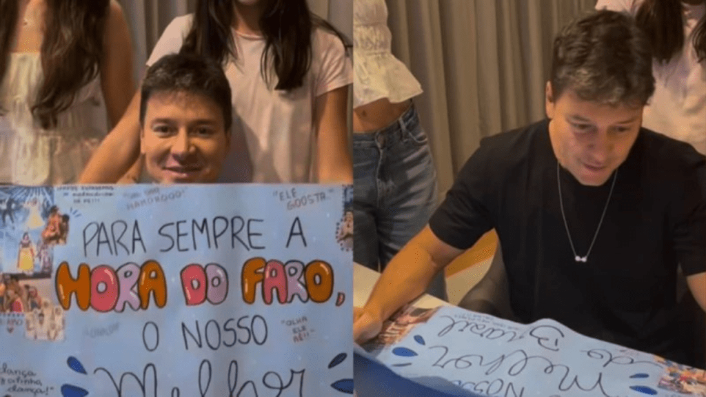 Rodrigo Faro foi surpreendido por uma homenagem cheia de amor de suas três filhas neste domingo, 29, após a transmissão de seu último programa na Record TV. Visivelmente emocionado com a despedida e as mudanças em sua carreira, o apresentador encontrou conforto na surpresa preparada pelas herdeiras.