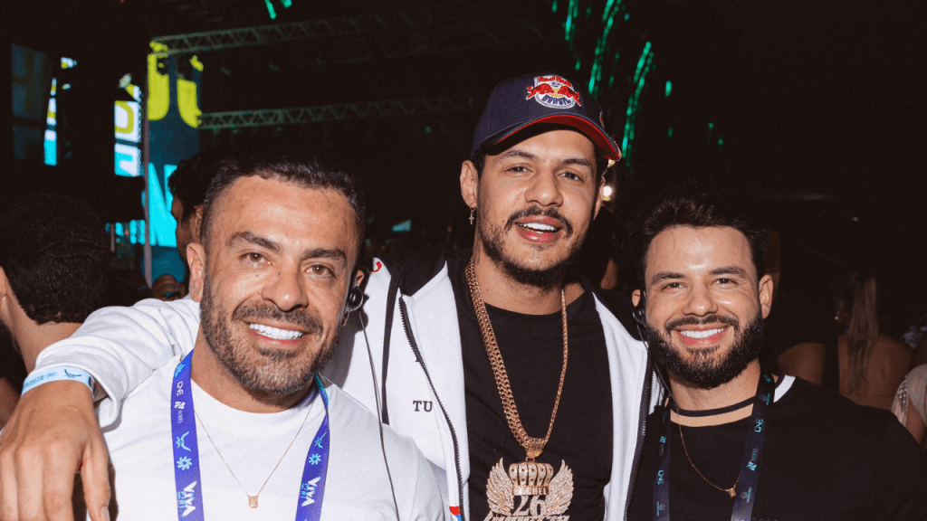 No dia 30 de dezembro, o cantor Hungria, conhecido por seu carisma e simpatia, foi uma das presenças marcantes no camarote. Ele interagiu com convidados e posou para fotos, deixando o ambiente ainda mais especial. Em uma das imagens registradas no lounge, Hungria aparece ao lado dos empresários e sócios do evento Cristiano Boêmio (à esquerda) e Gley Rodrigues (à direita).