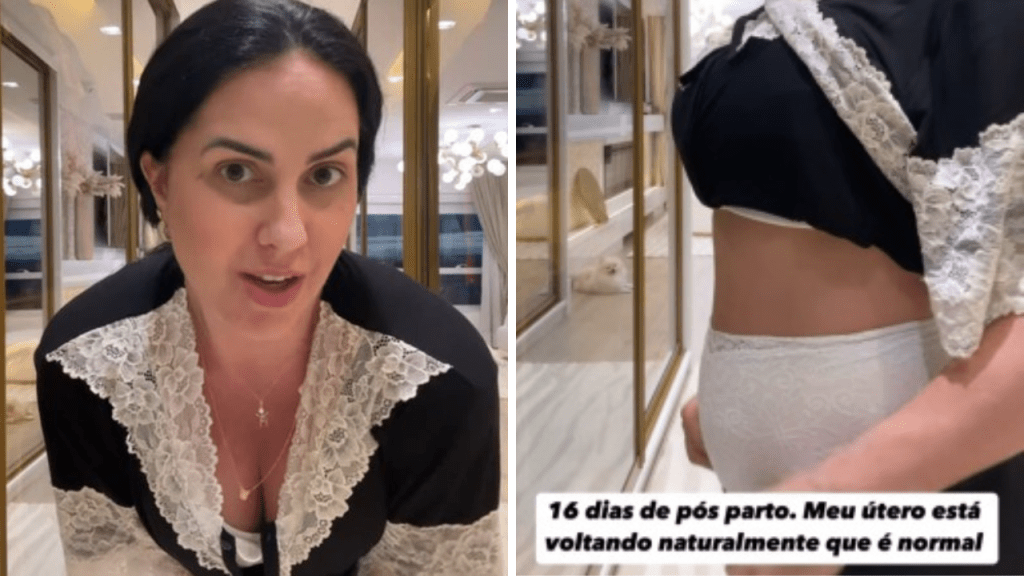 “Meu útero está voltando naturalmente para o lugar, o que é normal. Não tem como eu ficar com a barriga chapada em 16 dias, a não ser que faça algo mais agressivo“, explicou. Ela revelou ainda que não está usando cinta modeladora, optando apenas por uma calcinha de cintura alta.