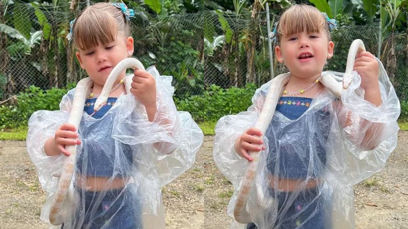 Maria Alice, de três anos, encantou os fãs com sua coragem ao interagir com uma cobra em passeio.