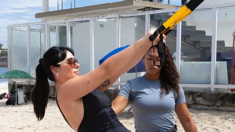 Sem buscar um padrão inatingível, Luciana mantém um treino voltado para resistência e tonificação, sob orientação da personal trainer Amanda Xavier. “Fizemos um treino ao ar livre, com equipamentos que trabalham força, principalmente de pernas, e resistência, para que ela possa encarar os dias intensos de carnaval“, explicou a profissional.