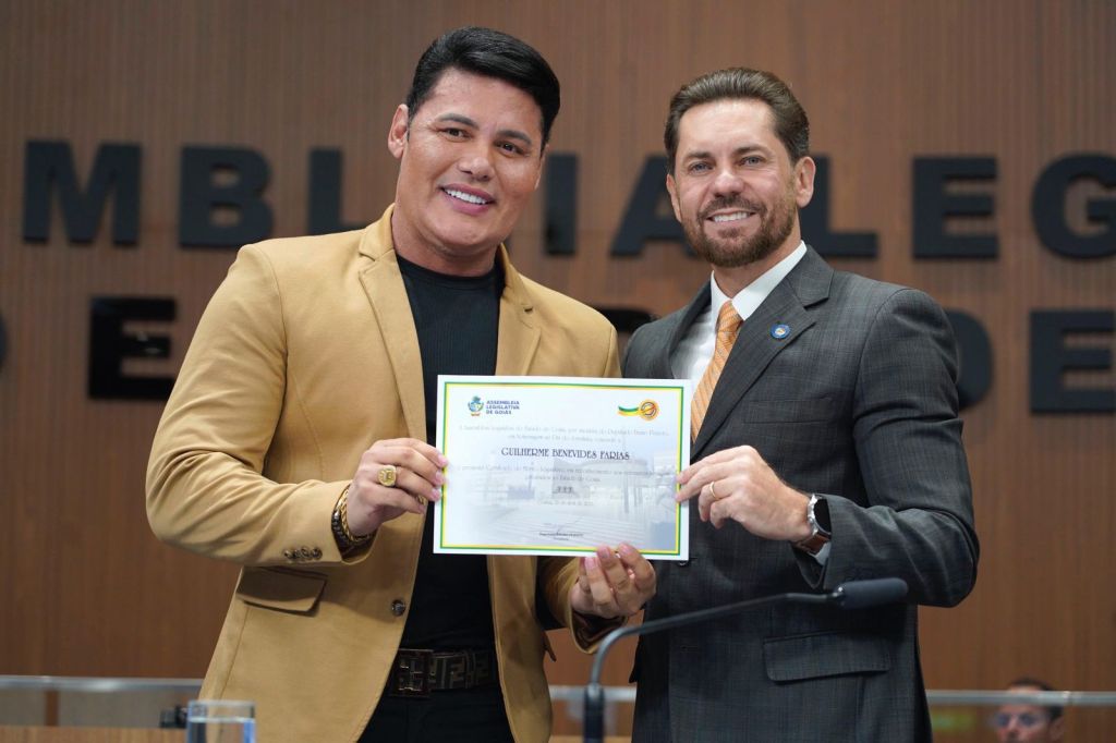Um dos destaques da noite foi a entrega do título de Cidadão Goiano ao apresentador Vicente Datena, em reconhecimento à sua trajetória e às contribuições para o jornalismo brasileiro, especialmente com sua atuação voltada à população goiana. Emocionado, Datena agradeceu a homenagem e destacou o carinho que sempre recebeu do povo de Goiás.