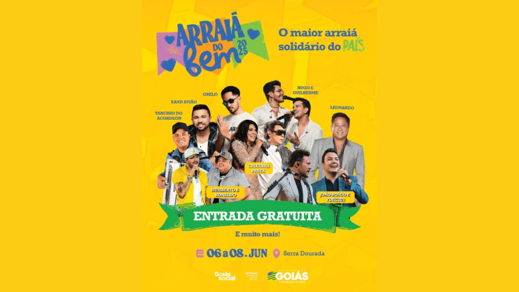 O mês de junho em Goiás começa em ritmo de festa com o Arraiá do Bem, evento promovido pela Secretaria de Retomada do Governo de Goiás, que acontece nos dias 6, 7 e 8 de junho, reunindo grandes nomes da música brasileira em uma celebração marcada por alegria, cultura e solidariedade.