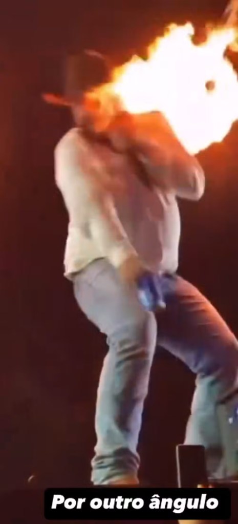 Apesar do susto, o sertanejo tranquilizou os seguidores: “Estou bem, mas arde muito.” Ele explicou que a falha aconteceu porque a equipe havia trocado recentemente as máquinas pirotécnicas. “Foi o primeiro show com elas. Não estavam funcionando e, de repente, funcionaram — na hora que eu menos esperava. O menino que estava operando nem viu que eu estava ali”, contou, em tom bem-humorado.