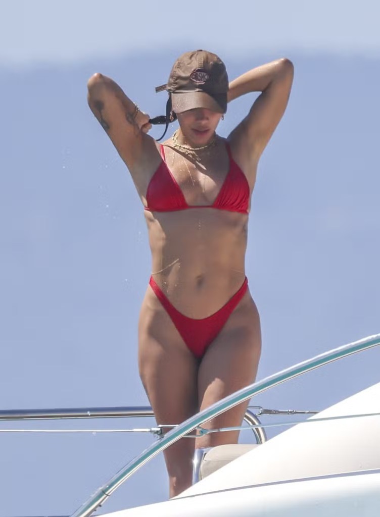 Anitta está aproveitando cada segundo do verão europeu, e com muito estilo! Nesta terça-feira, a cantora brasileira, foi fotografada curtindo um passeio de iate na paradisíaca ilha de Formentera, na Espanha. O look escolhido para o momento de relaxamento não passou despercebido: um biquíni vermelho cavado e fio-dental que evidenciou o corpo sarado da artista.