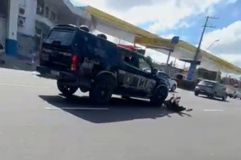 A Polícia Militar do Amazonas (PMAM) informa que equipes da 22ª Companhia Interativa Comunitária (Cicom) atendiam uma ocorrência envolvendo dois suspeitos de praticar assaltos em uma motocicleta com restrição de roubo, nas proximidades da avenida Constantino Nery. Durante a ação, ao perceberem a aproximação policial, o garupa da motocicleta saltou do veículo e tentou fugir a pé, correndo em direção à via, momento em que acabou sendo atingido por uma viatura da Companhia de Operações Especiais (COE), que prestava apoio à ocorrência.