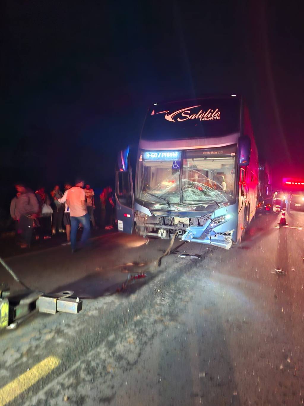 A ocorrência foi atendida por militares da 11ª Companhia Independente Bombeiro Militar (11ª CIBM), de Uruaçu, por volta de 1h45. A colisão envolveu dois ônibus e dois veículos de passeio, no km 160 da rodovia, na zona rural do município.