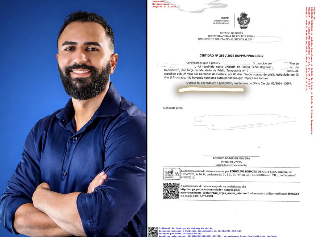 O servidor público municipal de Aparecida de Goiânia, Conrado Portugal, foi liberado da prisão neste fim de semana após passar por audiência de custódia. A informação foi confirmada pela defesa, que informou que a soltura ocorreu na manhã deste domingo, 12, mediante alvará de soltura.